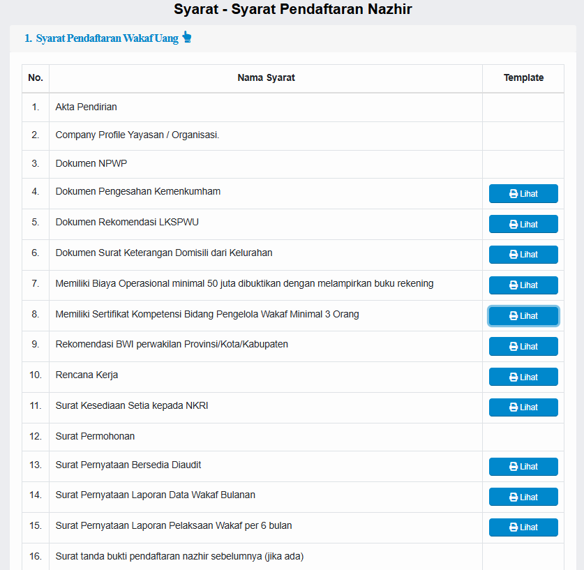 link Resmi Pendaftaran Legalitas Nazhir Wakaf Uang klik